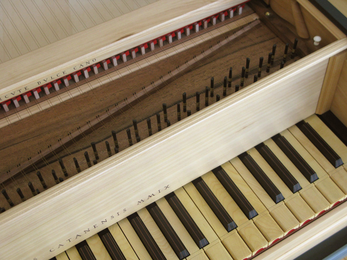 clavicembalo italiano; 51 note, Do - re'''; due registri da 8' (veduta dall'alto)